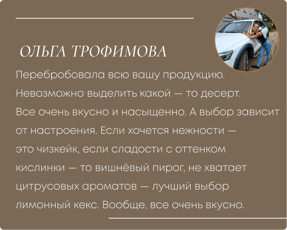 Мы постоянно повышаем уровень мастерства, следим за качеством продукта и соблюдением всех норм. Именно поэтому наши десерты вкусные и безопасные.